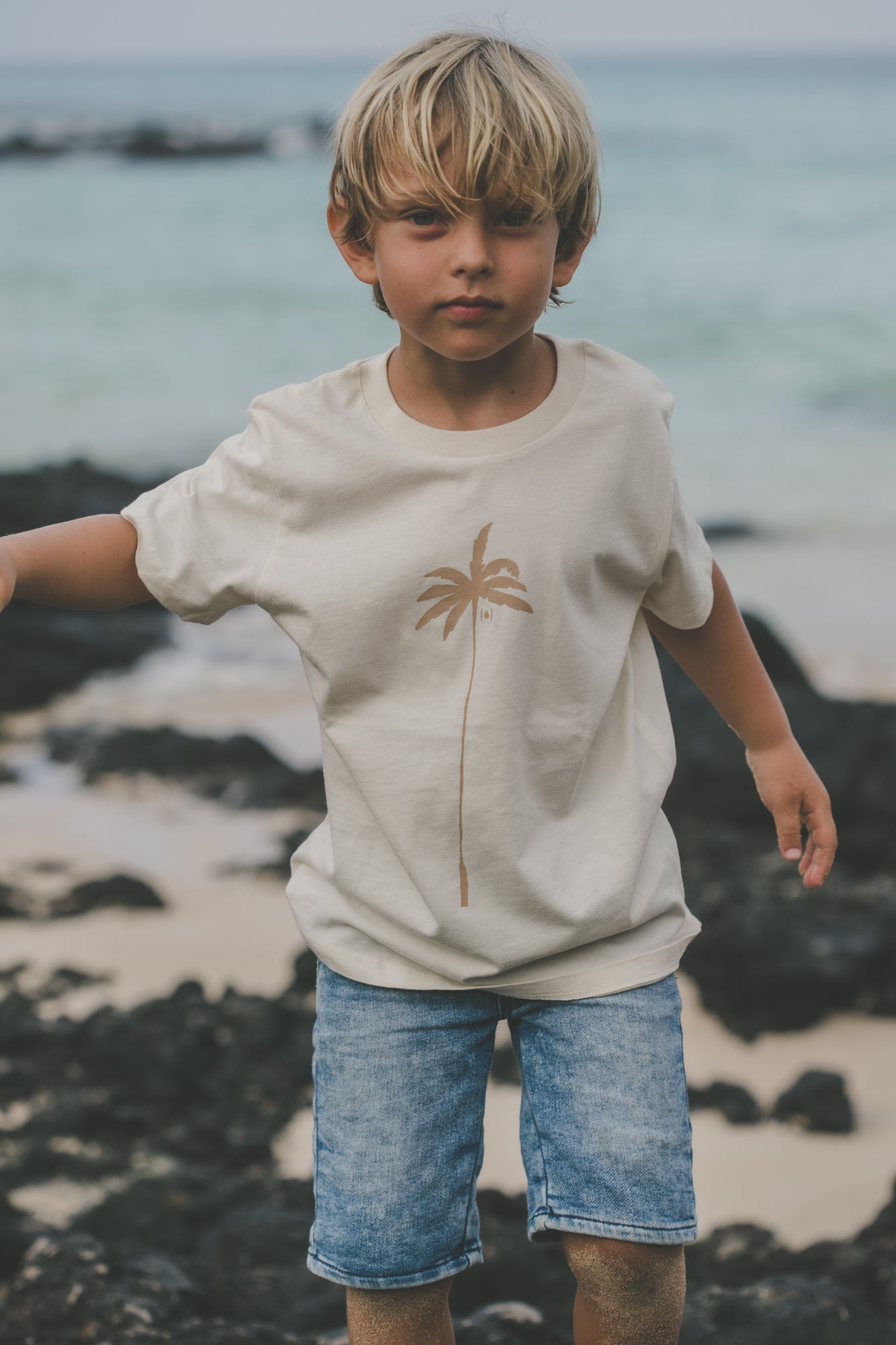 Kid's organic basic T-shirt in relaxed fit with Palm design.