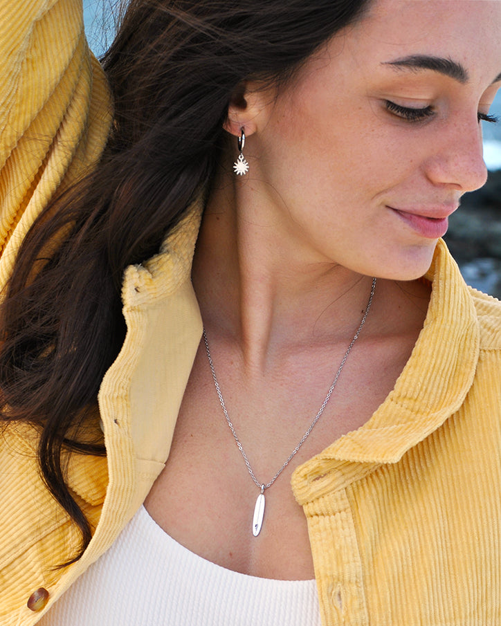 Stainless steel earrings in silver and gold tones, made on the island of Fuerteventura. Each piece is born from the sea and the surfer lifestyle: free, salty, and authentic - Designed with care and strong style for those who feel at home in the ocean, who love waves, endless sunsets, and a deep connection with nature. Durable, timeless jewelry full of character, made to follow you in and out of the water. Because the ocean isn’t just a place — it’s a way of life.