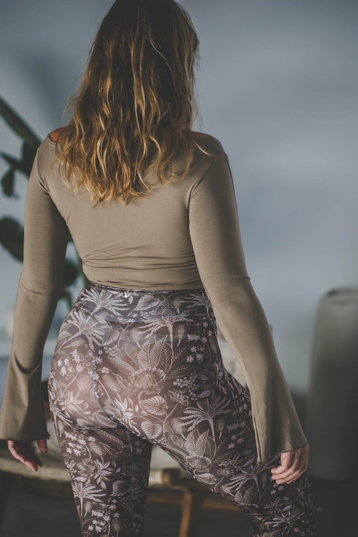Bell pants are gradually flared for a flowing silhouette making them perfect for dancing, gentle yoga flows, yin, meditation, relaxation and your everyday comfort. Together with mantas snake top this set gets a little bit of more silhouette snake shape.