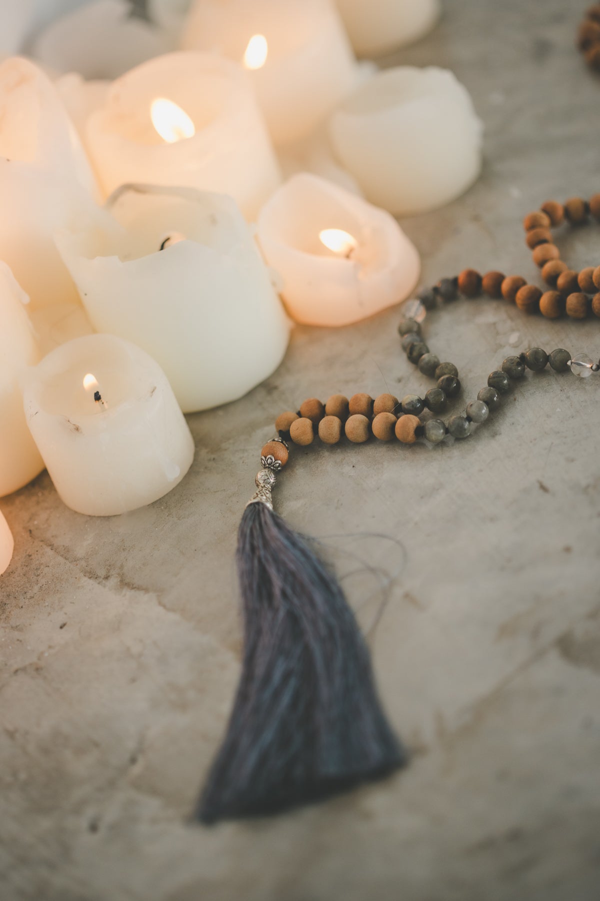Labradorite Mala – Sandalwood, Quartz & Energy Stones