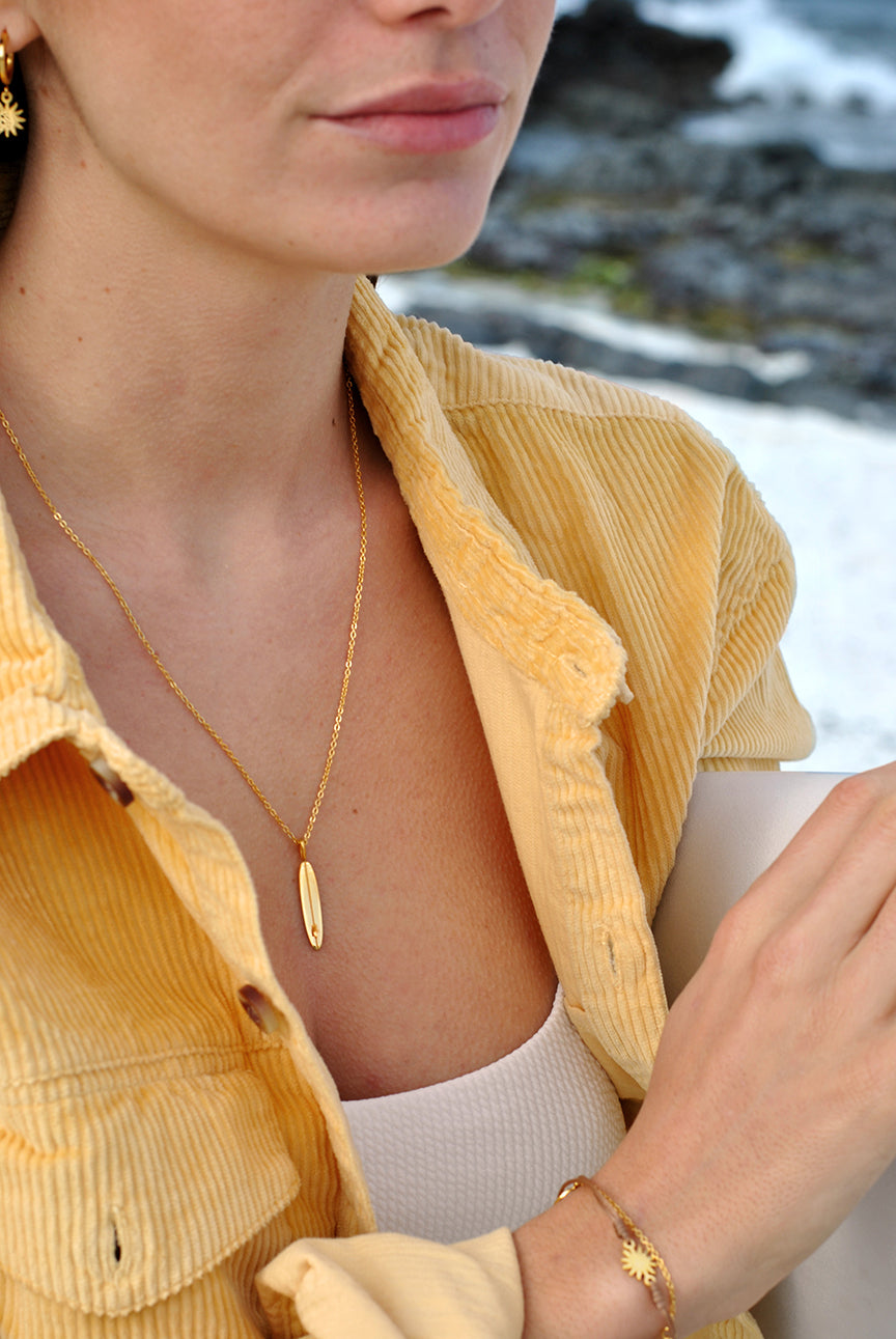 Stainless steel necklaces in silver and gold tones, made on the island of Fuerteventura. Each piece is born from the sea and the surfer lifestyle: free, salty, and authentic - Designed with care and strong style for those who feel at home in the ocean, who love waves, endless sunsets, and a deep connection with nature. Durable, timeless jewelry full of character, made to follow you in and out of the water. Because the ocean isn’t just a place — it’s a way of life.